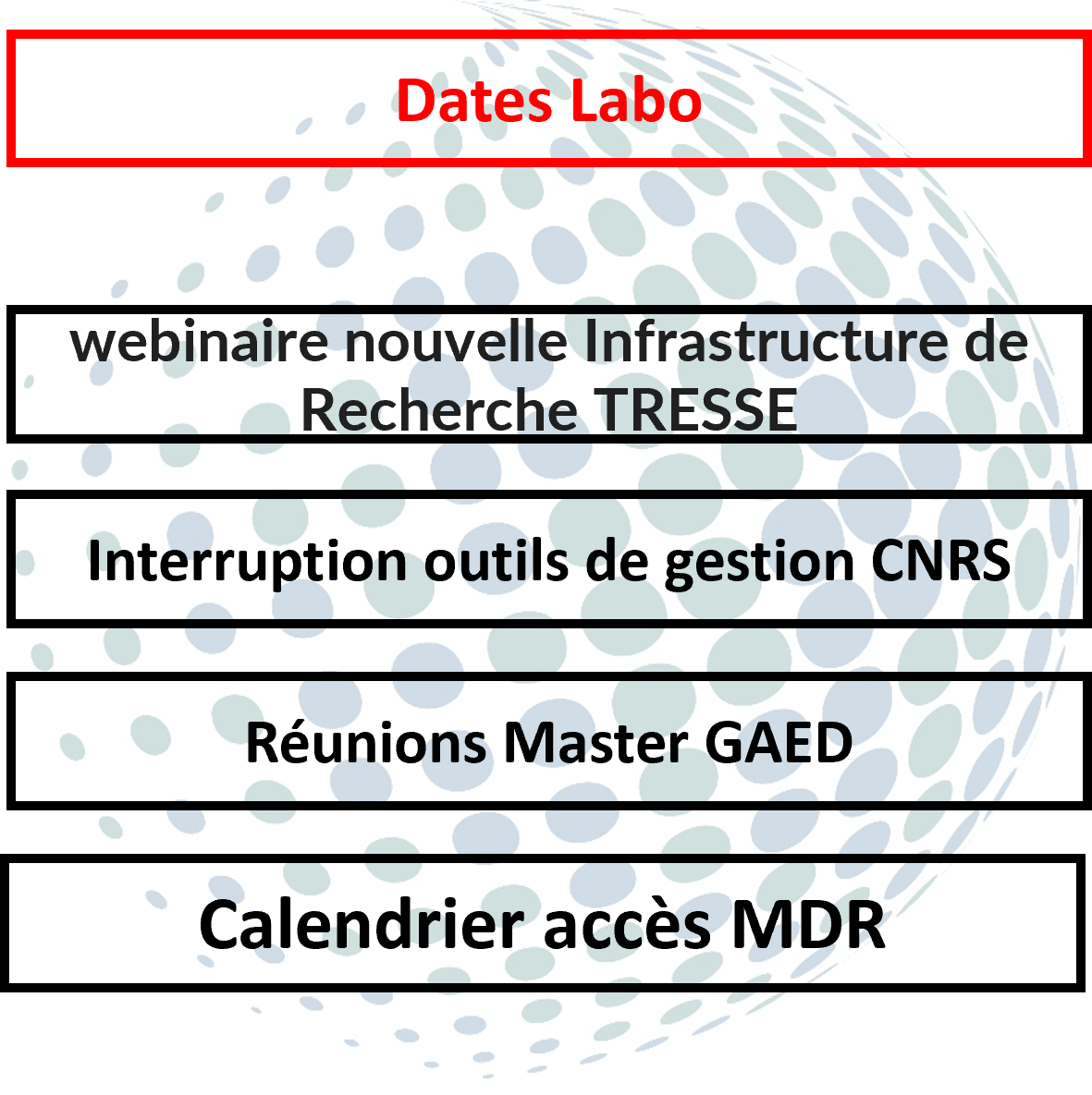 Les réunions master / Calendrier accès MDR / interruption des outils de gestion du CNRS...